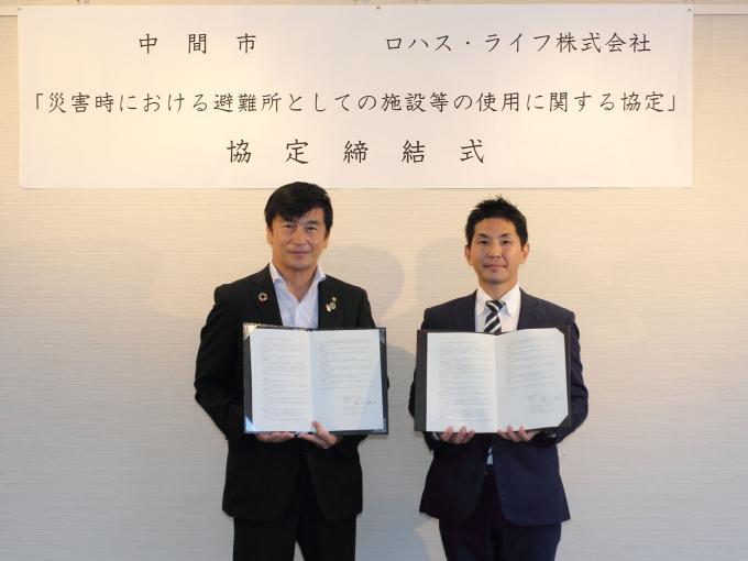 令和4年9月12日(月曜日)、中間市はロハス・ライフ株式会社と「災害時における避難所としての施設等の使用に関する協定」を締結しました。
